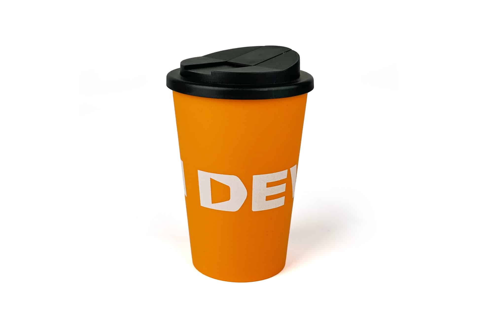 The Pop Mug Orange, featuring the iconic Develon logo encircling its exterior, is more than just a pop mug; it’s a statement of sustainability and style. With a volume capacity of 350 ml, this pop mug is the perfect companion for your daily beverages.